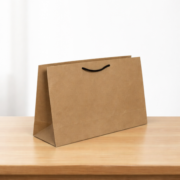Bolsa de papel kraft marrón de alta calidad, ideal para potenciar la presentación de tu marca. Con medidas de 20 x 30 x 10 cm, es perfecta para productos de mayor altura o volumen, ofreciendo practicidad y un acabado prolijo.